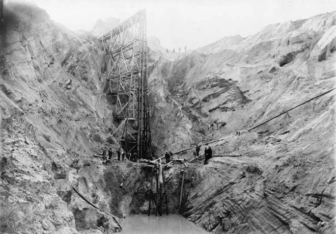 As this work progressed, the Kildare Hill Claim became the site of the deepest hydraulic elevating operation in the world, that would turn a 120-metre hill into a 68-metre hole. Work stopped in 1902 when there was insufficient fall in the tailings channel to carry away the tailings.
